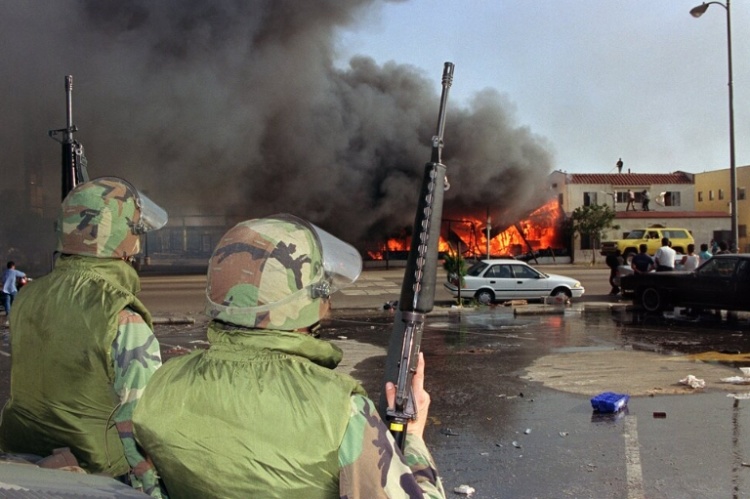 据美国加州“军事博物馆”网站记载,20世纪90年代初的洛杉矶堪称一座“犯罪之都”,各种势力盘根错节,黑帮分子横行街头。在严重的社会治安问题之外,各少数族裔间的种族冲突也很尖锐。1991年3月,非裔青年罗德尼·金因超速被洛杉矶警察拦停,他在接受检查时试图反抗,后被4名白人警员“用警棍抽打了50多次”。这宗暴力执法事件让社会各界群情激愤,多家媒体密集报道,当时仅《洛杉矶时报》一家报纸就刊登了40多篇文章。
